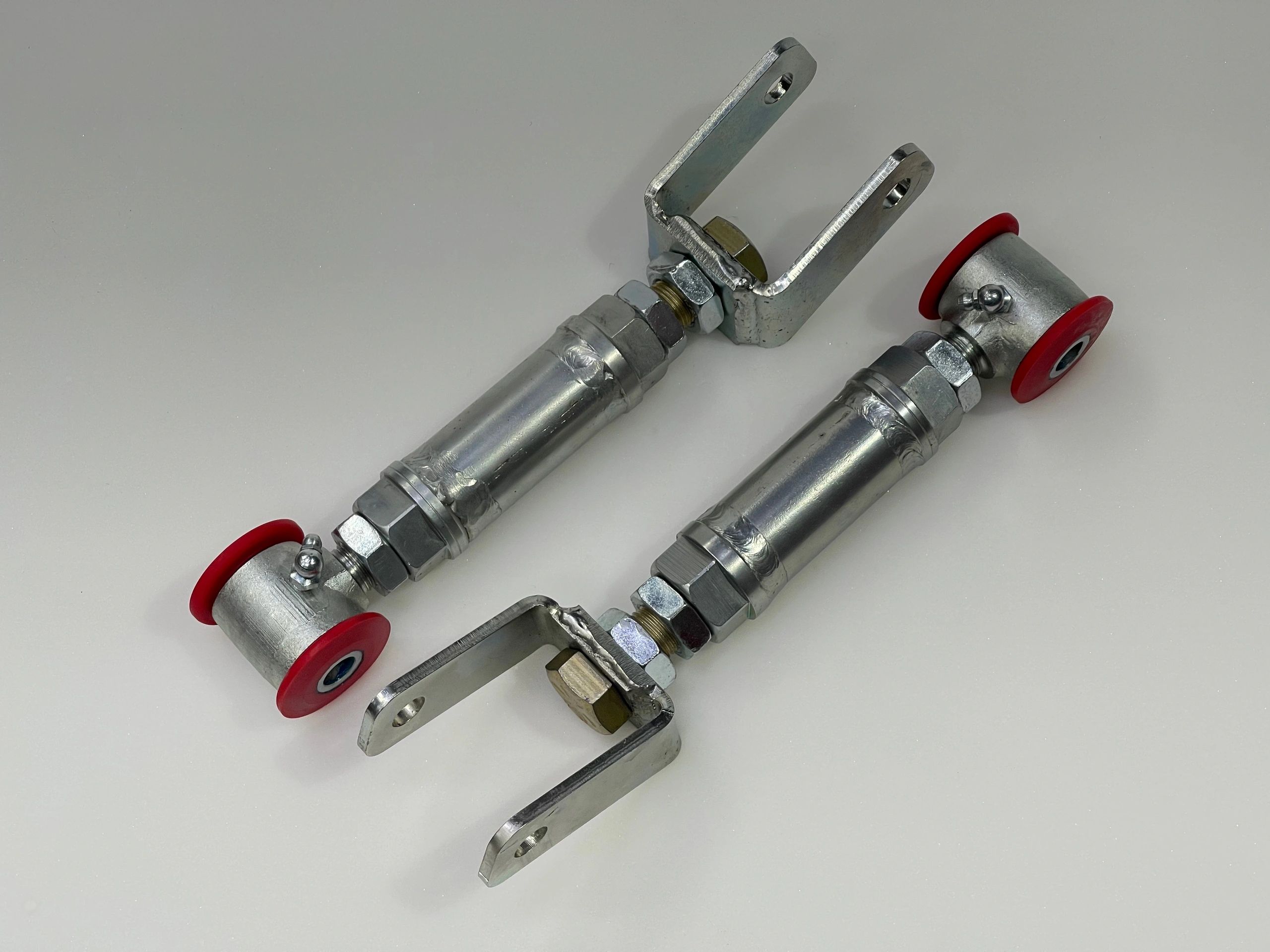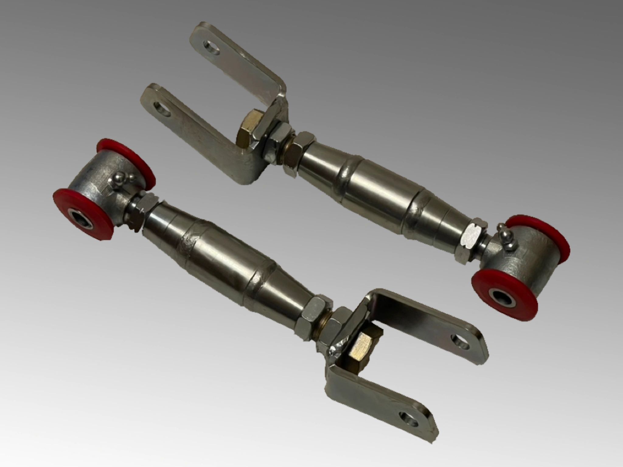 This Upper Camber Arm set is extremely beefed up and user adjustable to allow for correct camber of the rear wheels after installing a tall lift kit. Replacing your factory stamped upper camber arms with these completely do-it-yourself bolt on replacement arms can be installed in your own garage, with basic shop tools, in just an hour or less. Once installed, you can do your own alignment adjustments or take the vehicle to any knowledgeable shop to have it done for you. Once you install the arms, you then rotate the main tube to adjust for positive or negative camber. Lastly, lock the jam nuts and you are good to go. No need to remove the arms to adjust camber whenever an alignment is needed in the future.